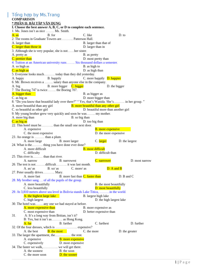 1. Ms. Jones isn’t as nice …….. Ms. Smith.