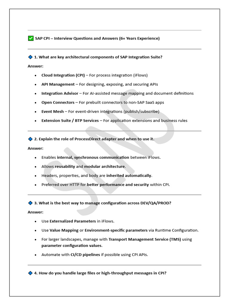 SAP CPI – Interview Questions and Answers (6+ Years Experience)