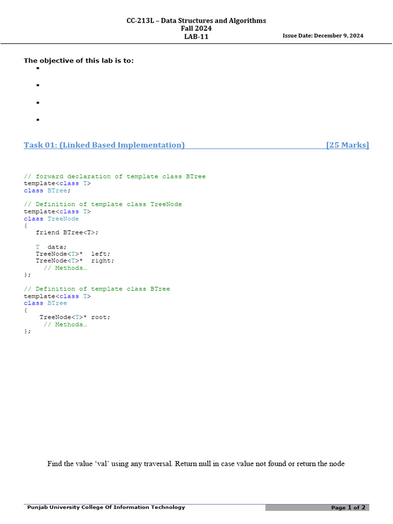 You may use following class definition and implement the functions given in the public part of the Tree.