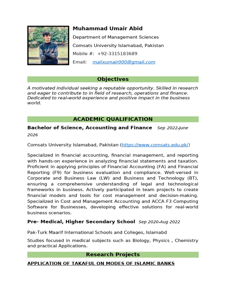 Assistant Professor Management Sciences, CUI Islamabad Campus