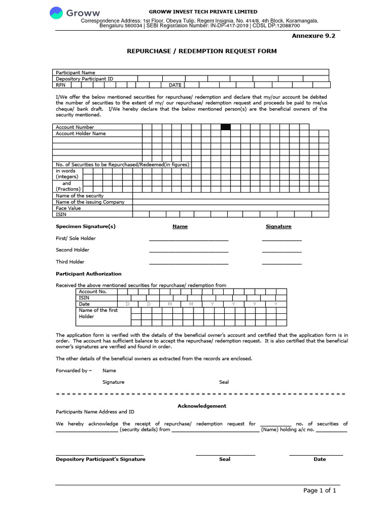 the number of securities to the extent of my/ our repurchase/ redemption request and proceeds be paid to me/us