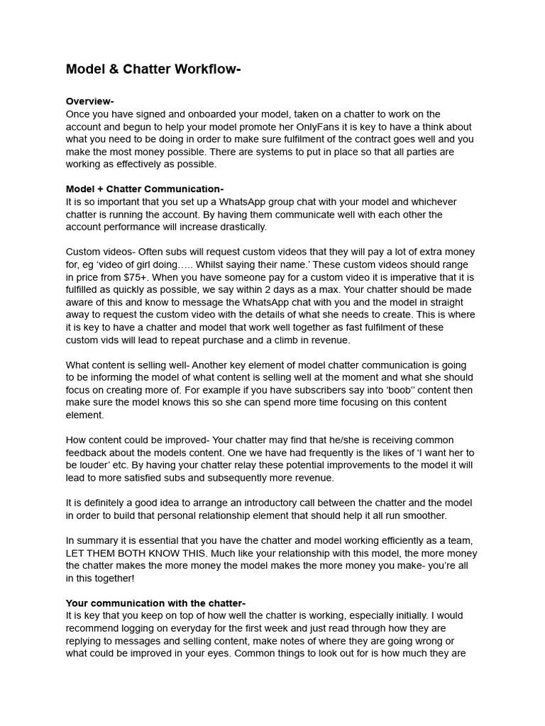 Once you have signed and onboarded your model, taken on a chatter to work on the