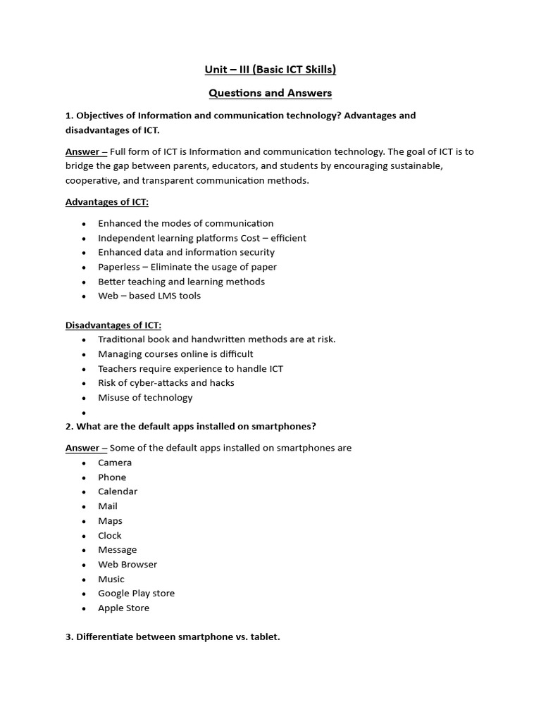 Unit – III (Basic ICT Skills)