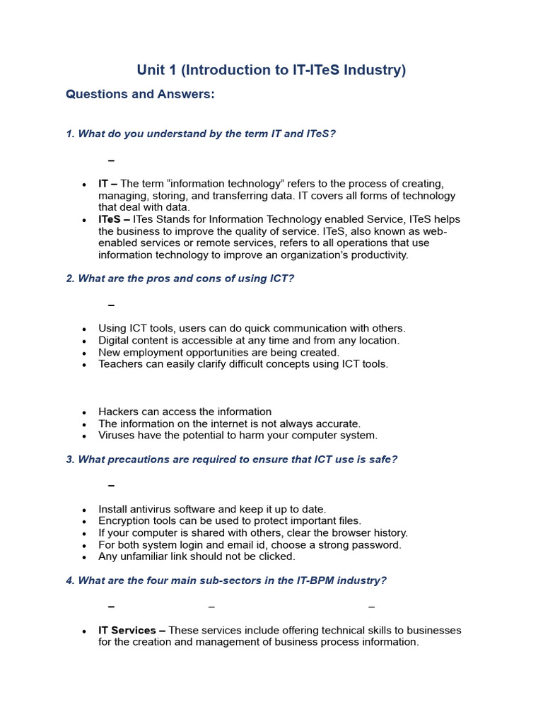• ITeS – ITes Stands for Information Technology enabled Service, ITeS helps