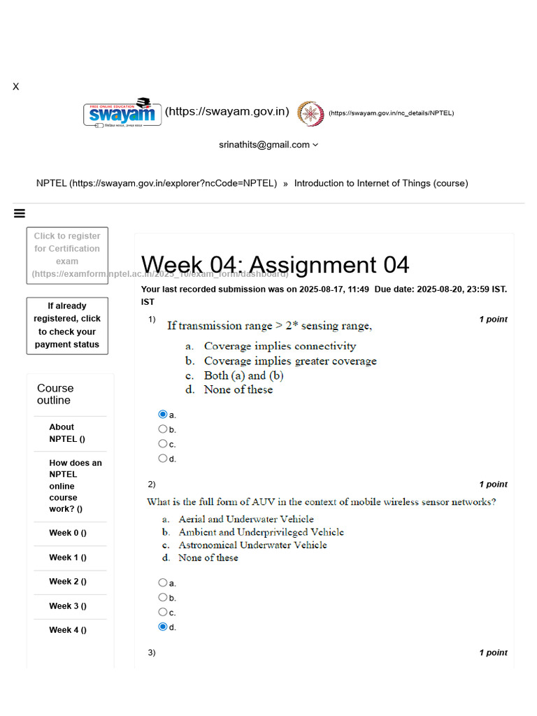 Your last recorded submission was on 2025-08-17, 11:49 Due date: 2025-08-20, 23:59 IST.