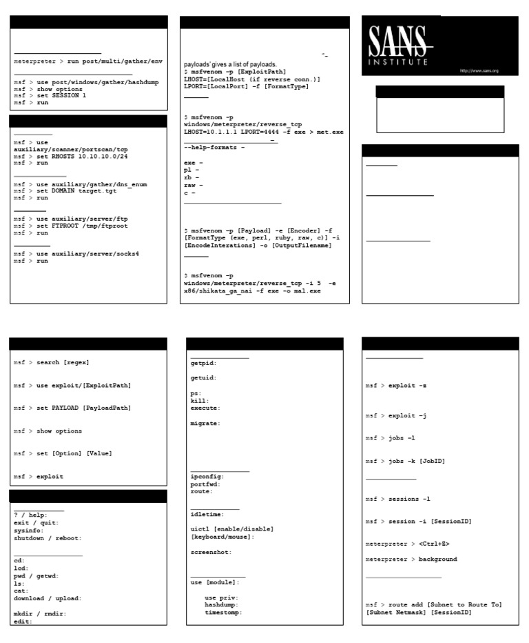 msf > run Reverse Meterpreter payload as an executable and The purpose of this cheat sheet is to
