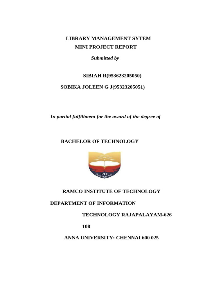 Certified that this Report titled “LIBRARY MANAGEMENT SYSTEM” is the bonafide