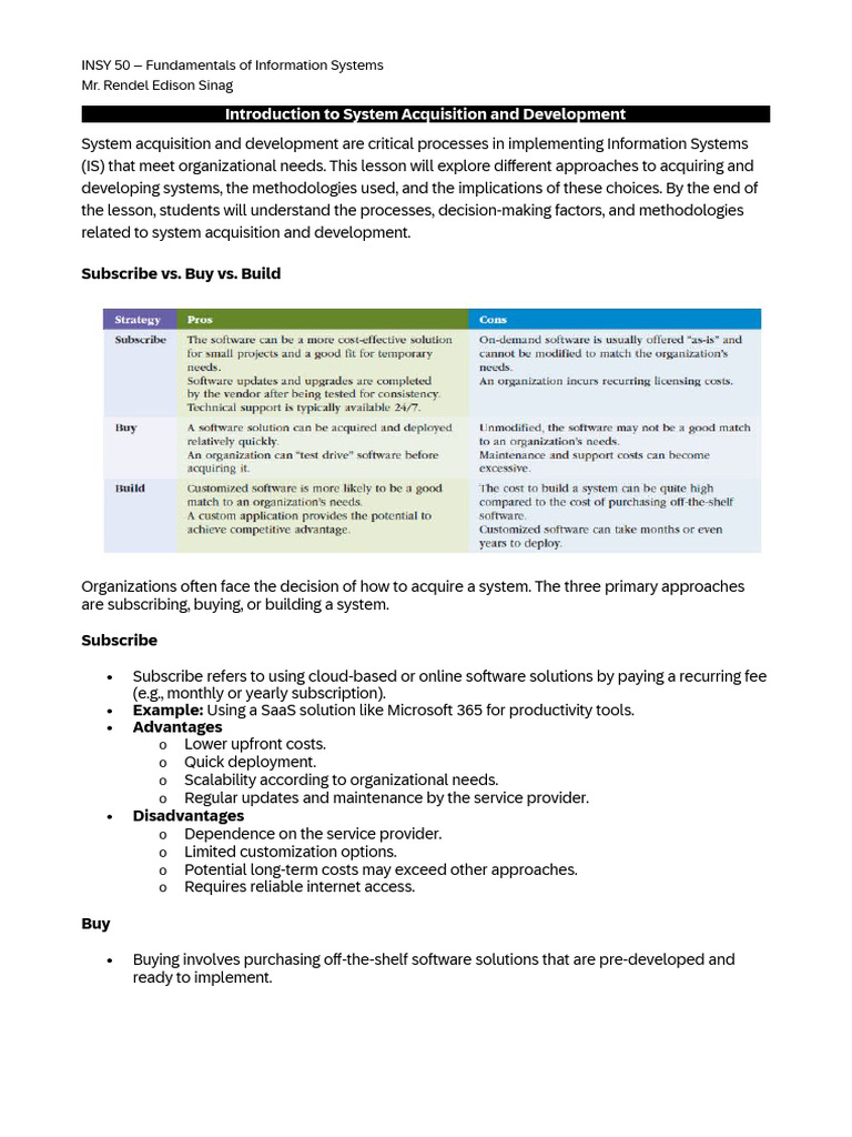 (IS) that meet organizational needs. This lesson will explore different approaches to acquiring and