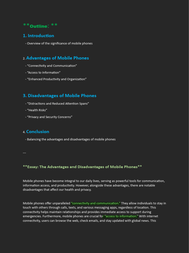 **Essay: The Advantages and Disadvantages of Mobile Phones**