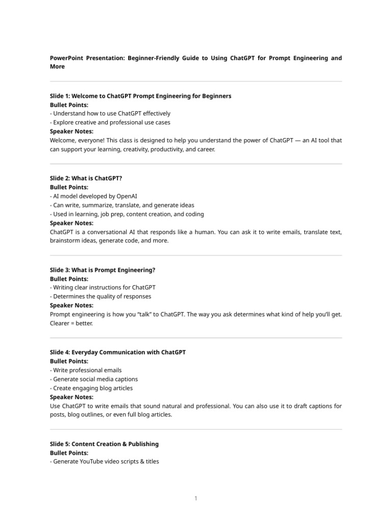 PowerPoint Presentation: Beginner-Friendly Guide to Using ChatGPT for Prompt Engineering and