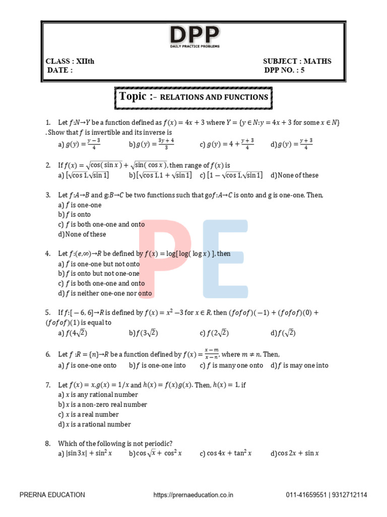 Topic :- RELATIONS AND FUNCTIONS