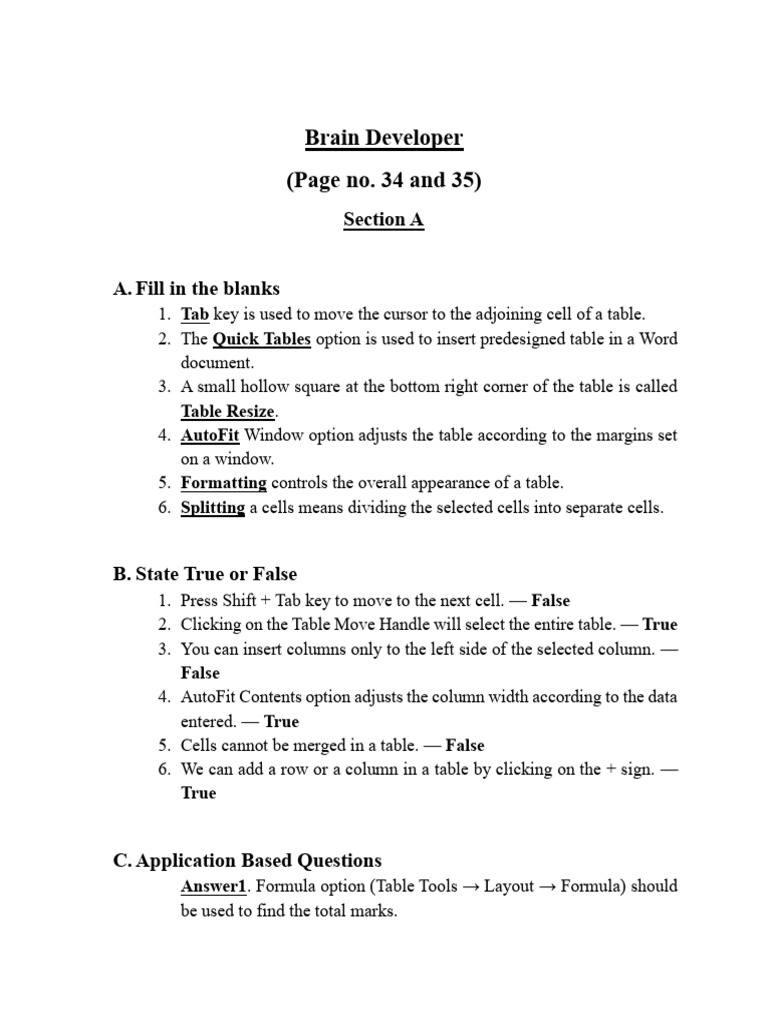 5. Cells cannot be merged in a table. — False