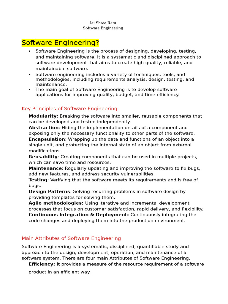 Software Engineering is a systematic, disciplined, quantifiable study and