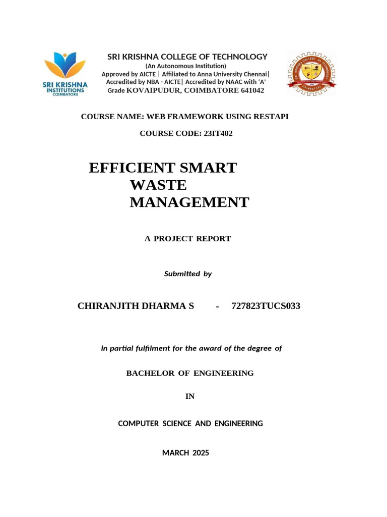 environmental impact. It integrates IoT-enabled smart bins, GPS-tracked waste collection