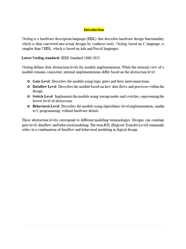 gate-level, dataflow, and behavioral modeling. The term RTL (Register Transfer Level) commonly