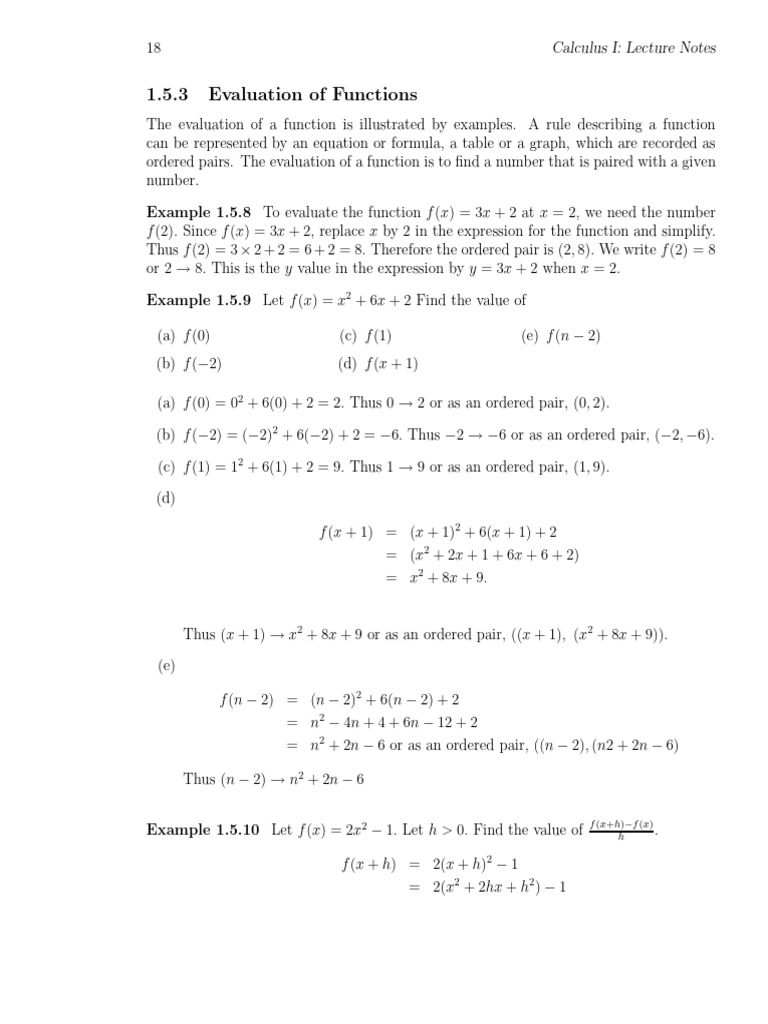 (b) f (−2) = (−2)2 + 6(−2) + 2 = −6. Thus −2 → −6 or as an ordered pair, (−2, −6).