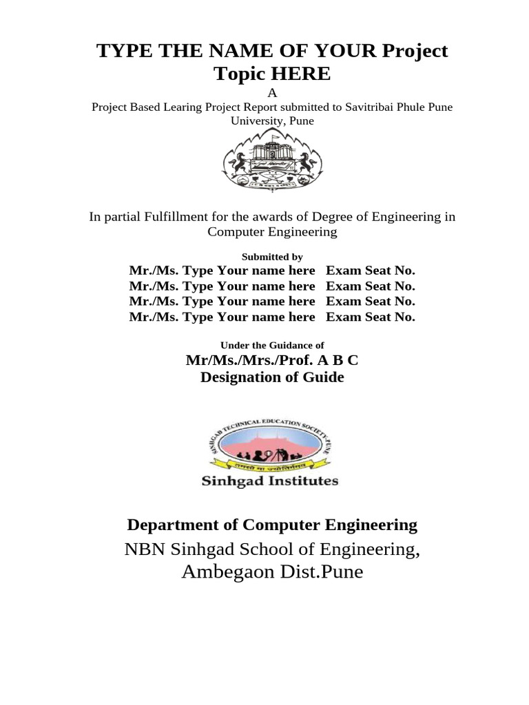 Project Based Learing Project Report submitted to Savitribai Phule Pune