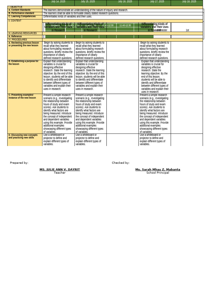 C. Learning Competencies Differentiates kinds of variables and their uses. Learning