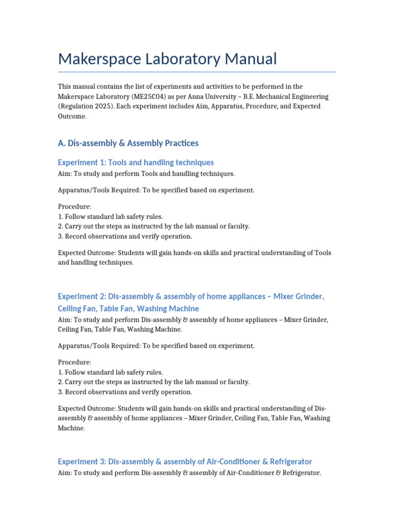Makerspace Laboratory Manual