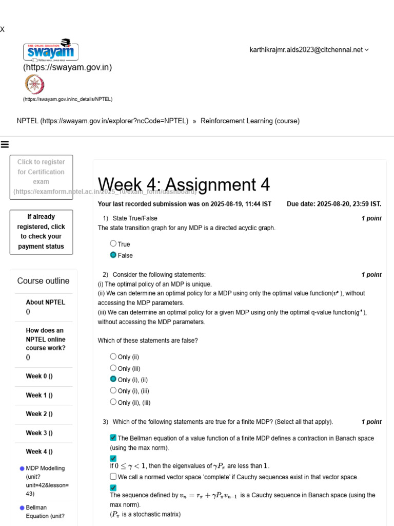 Your last recorded submission was on 2025-08-19, 11:44 IST Due date: 2025-08-20, 23:59 IST.