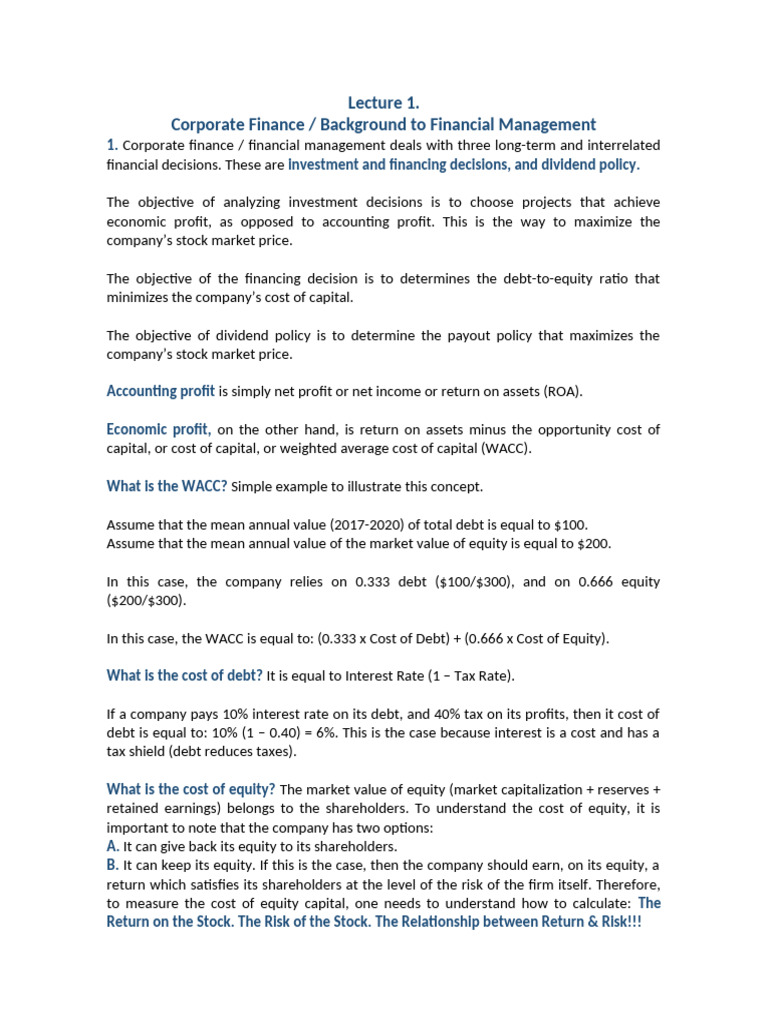 1. Corporate finance / financial management deals with three long-term and interrelated