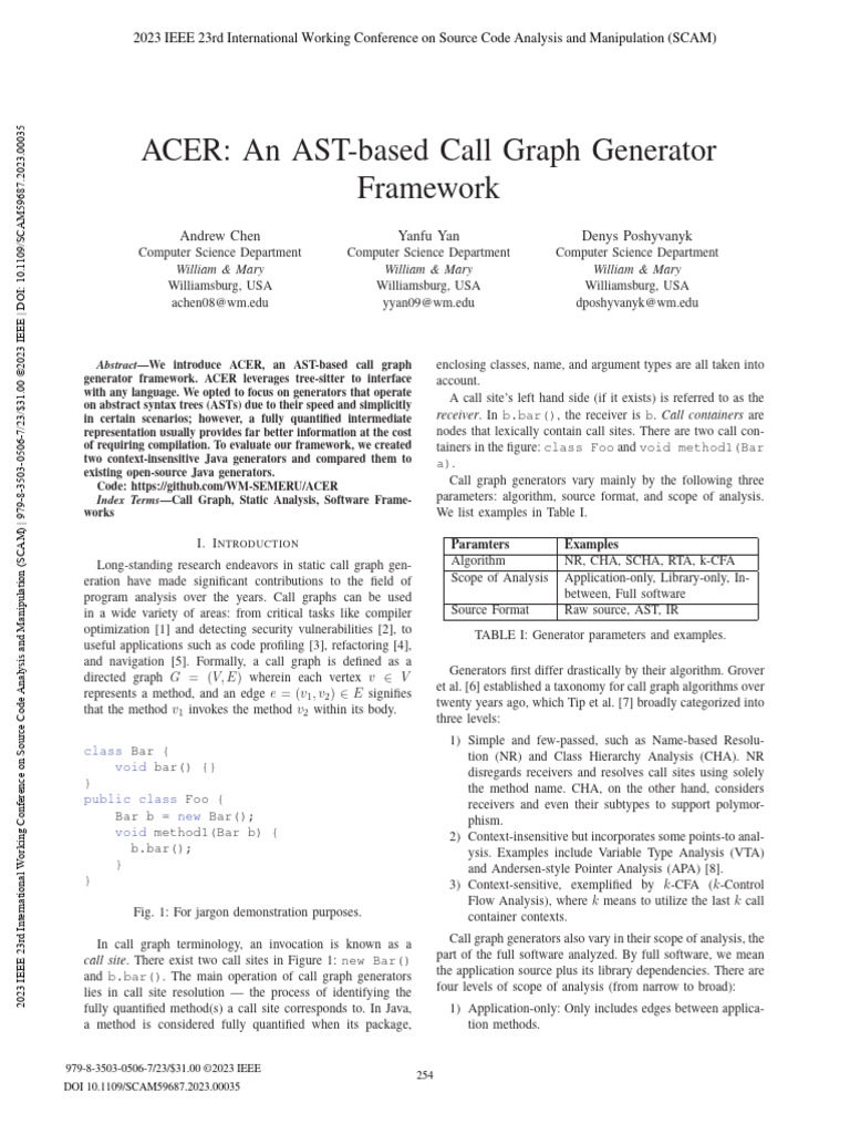 Code: https://github.com/WM-SEMERU/ACER Call graph generators vary mainly by the following three