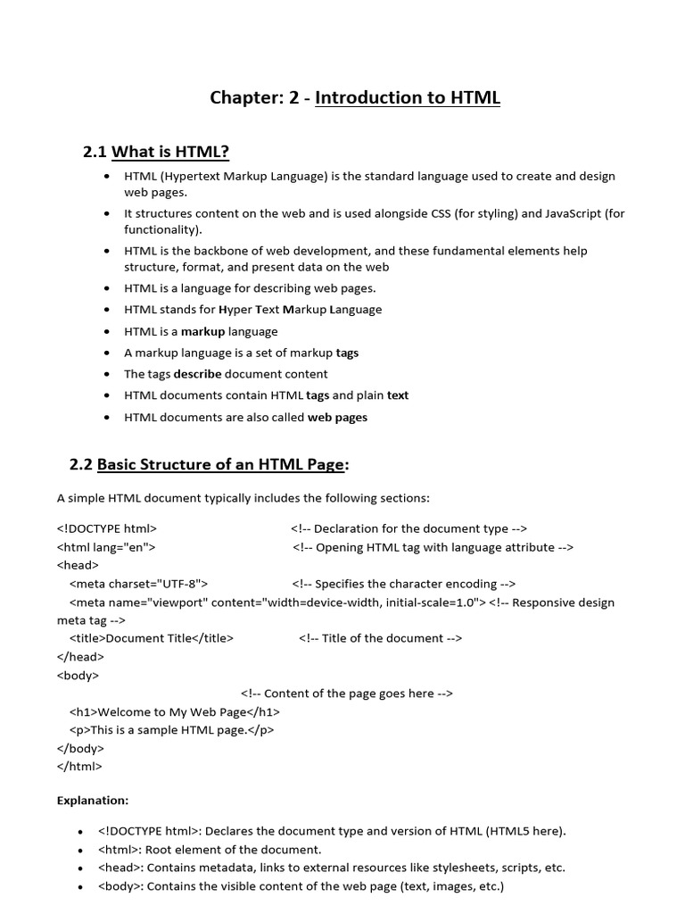<!DOCTYPE html>: Declares the document type and version of HTML (HTML5 here).