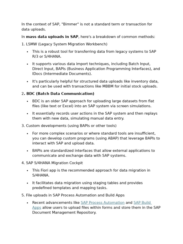 uploads, it's likely a misnomer. Focus on the standard SAP tools and