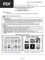 of the Grade 7 General Science Textbook, focusing on physical and chemical changes. By