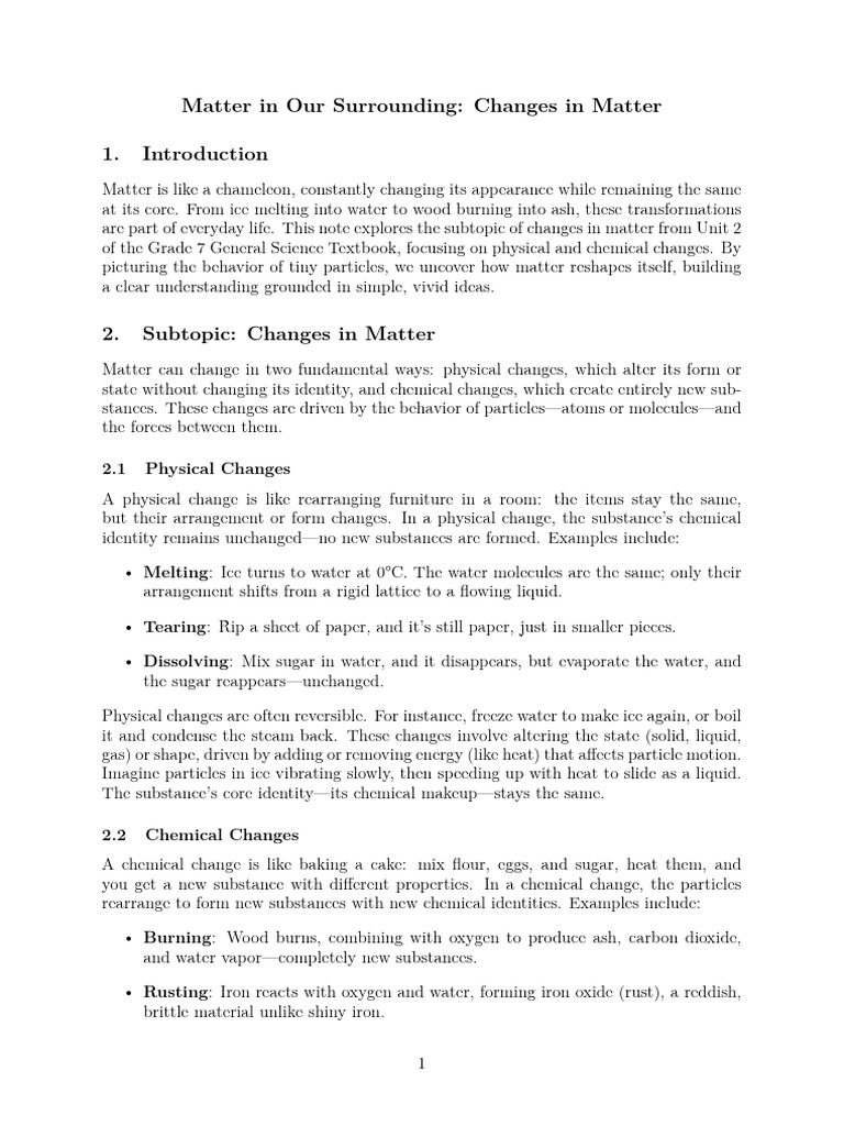 are part of everyday life. This note explores the subtopic of changes in matter from Unit 2