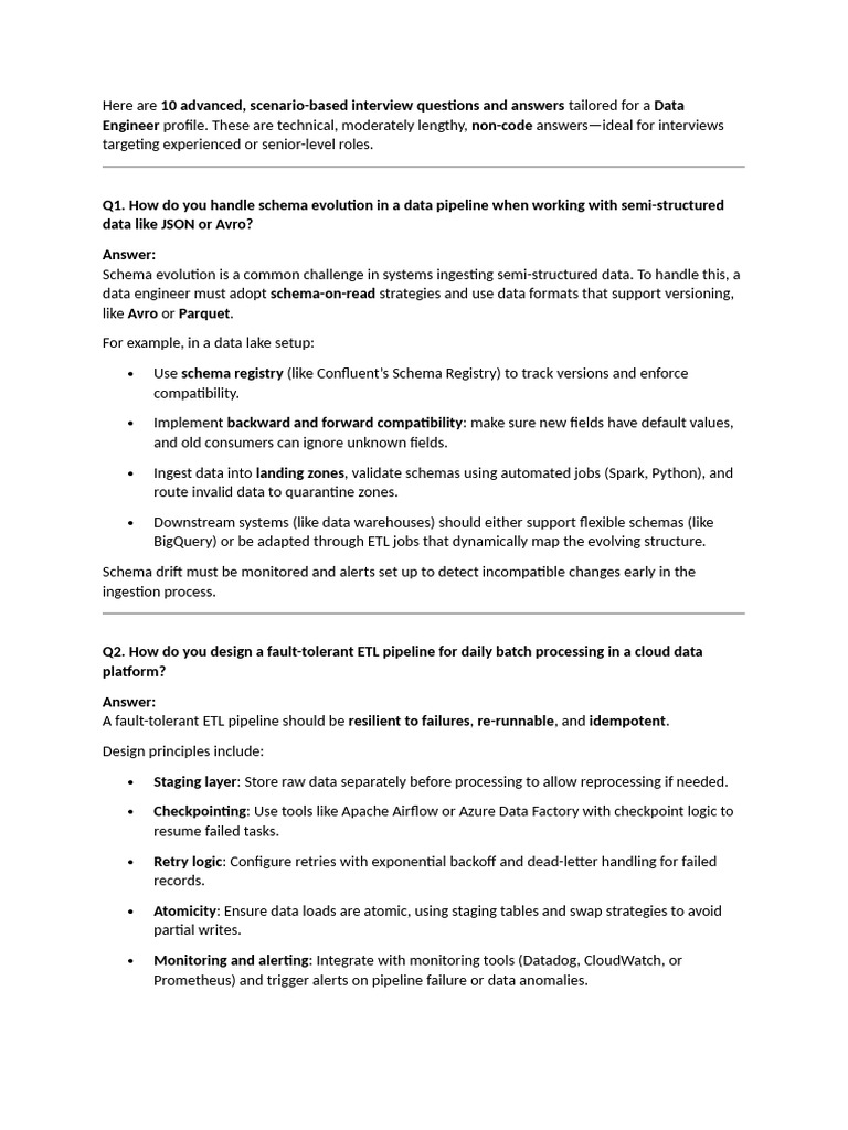 Here are 10 advanced, scenario-based interview questions and answers tailored for a Data