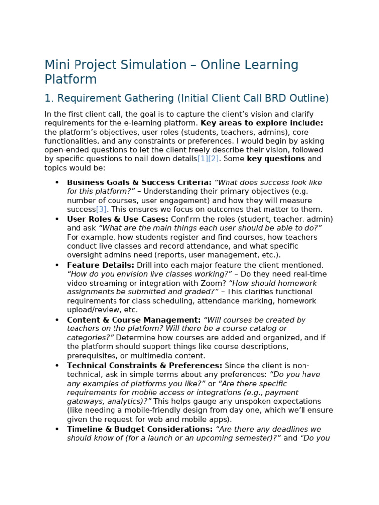 1. Requirement Gathering (Initial Client Call BRD Outline)