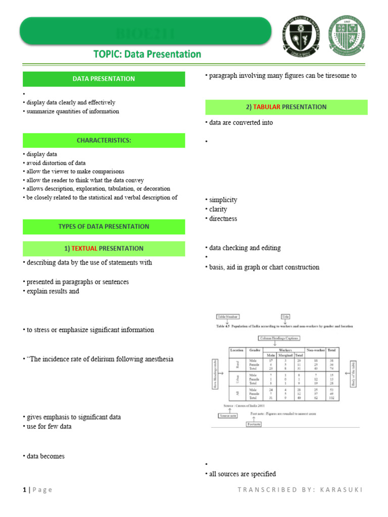 DATA PRESENTATION • paragraph involving many figures can be tiresome to