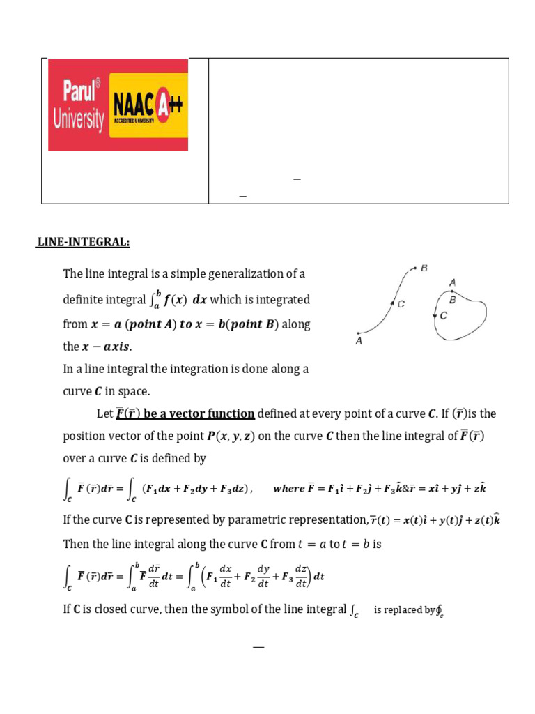 position vector of the point 𝑷(𝒙, 𝒚, 𝒛) on the curve 𝑪 then the line integral of 𝑭 𝒓