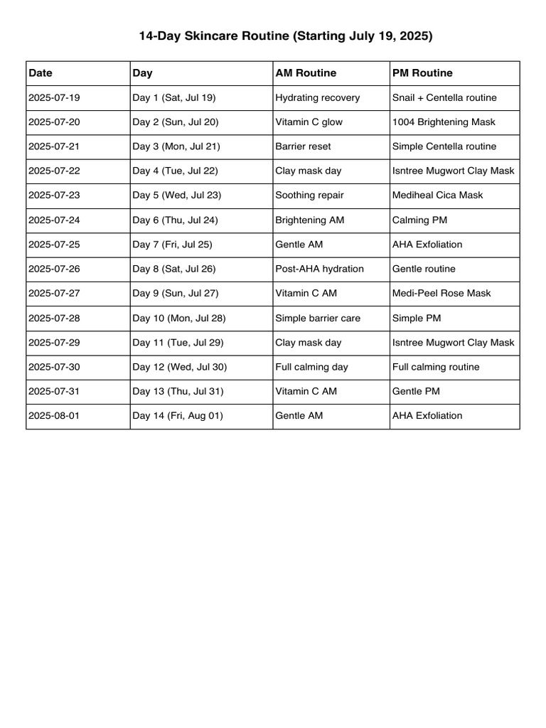 2025-07-19 Day 1 (Sat, Jul 19) Hydrating recovery Snail + Centella routine
