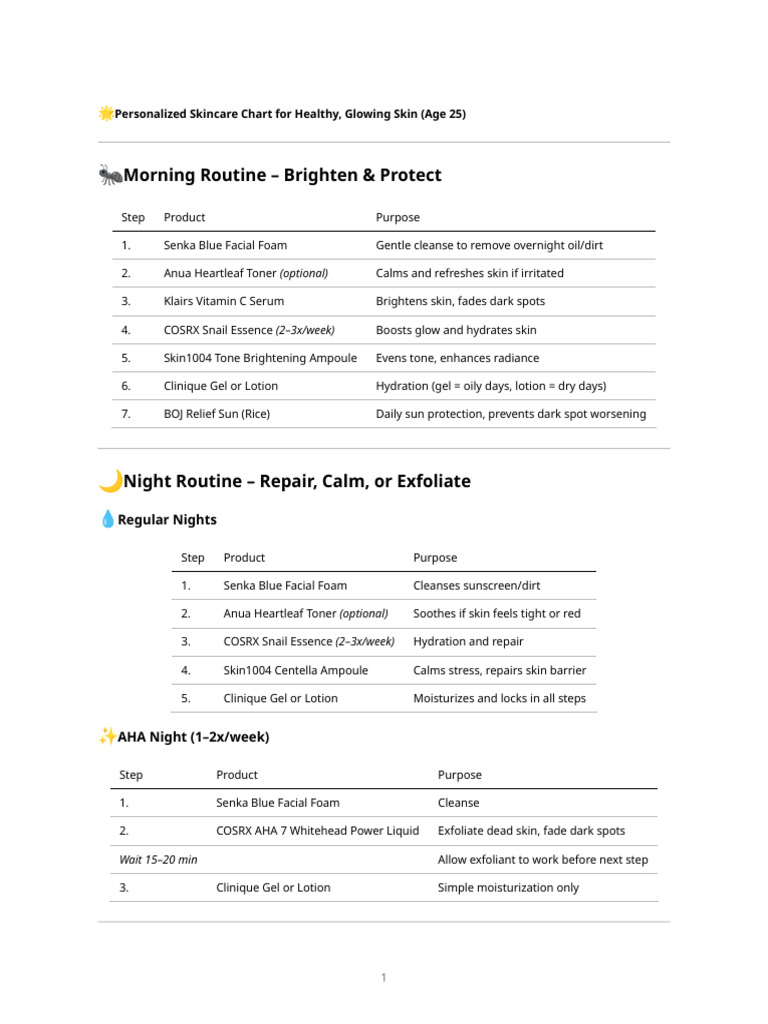 🌟 Personalized Skincare Chart for Healthy, Glowing Skin (Age 25)