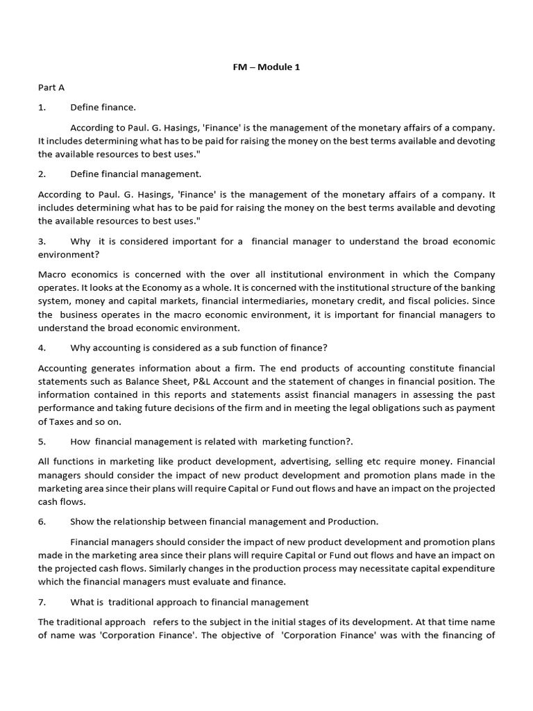7. Efficient financial management is necessary for the survival, growth, expansion and diversification of a