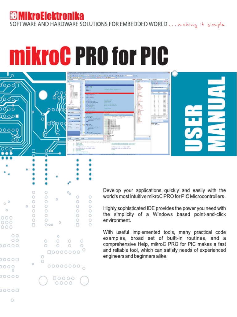 This manual covers mikroC PRO for PIC version 1.1 and the related topics. Newer ver-