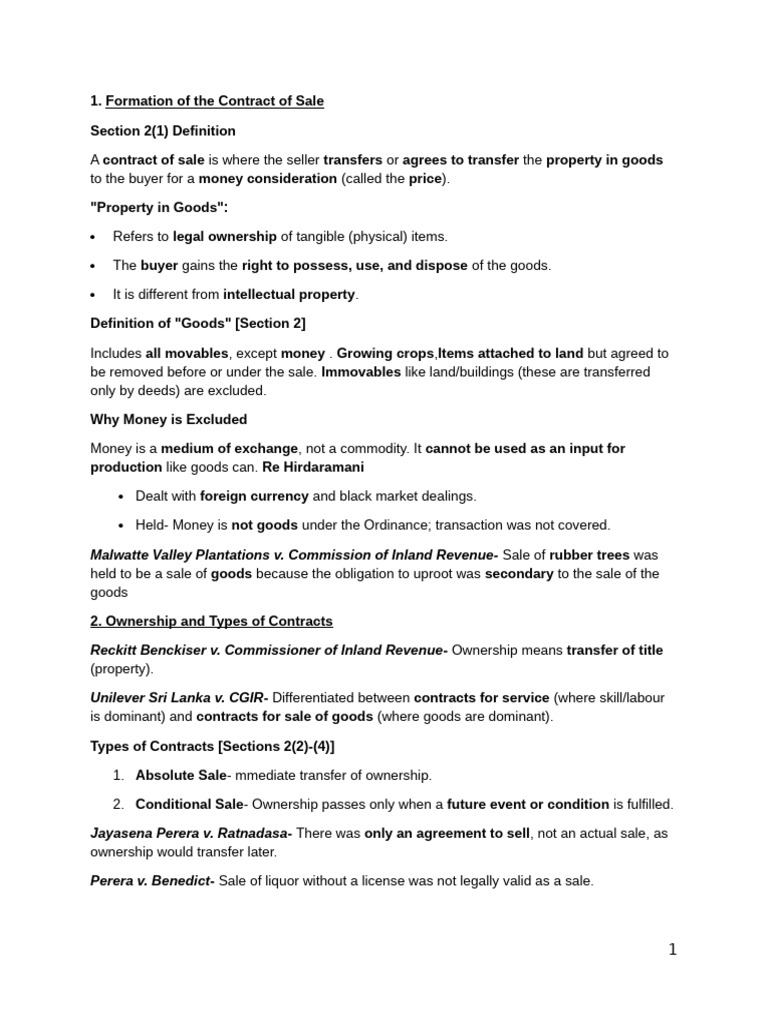 2. Conditional Sale- Ownership passes only when a future event or condition is fulfilled.