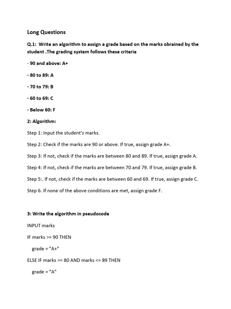 Q.1: Write an algorithm to assign a grade based on the marks obrained by the