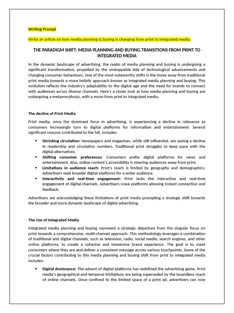 crucial factors contributing to this media planning and buying shift from print to integrated media