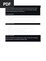 Science is the systematic study of the natural world through observation and experimentation. It seeks