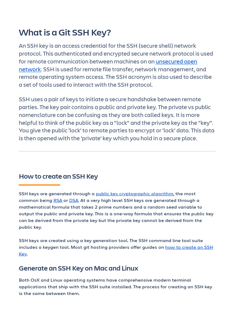 able to create and start using an SSH key. Git is capable of using SSH keys instead of