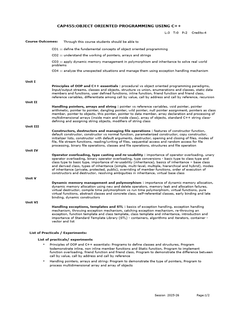 CAP455:OBJECT ORIENTED PROGRAMMING USING C++