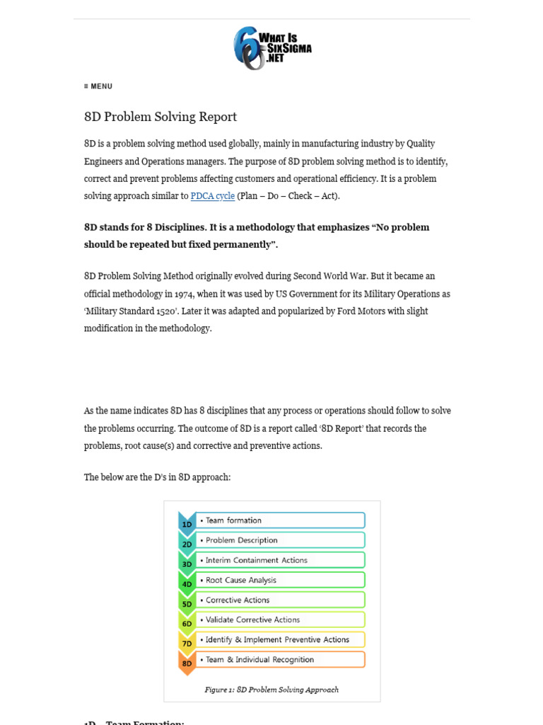the problems occurring. The outcome of 8D is a report called ‘8D Report’ that records the