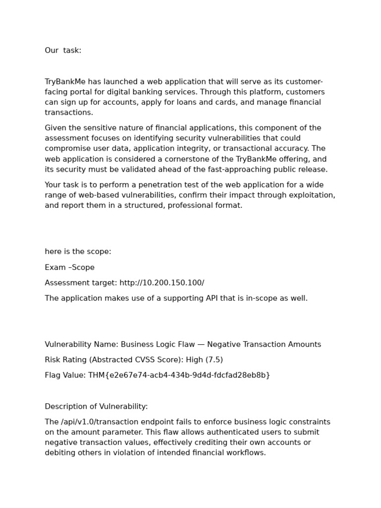 Vulnerability Name: Business Logic Flaw — Negative Transaction Amounts
