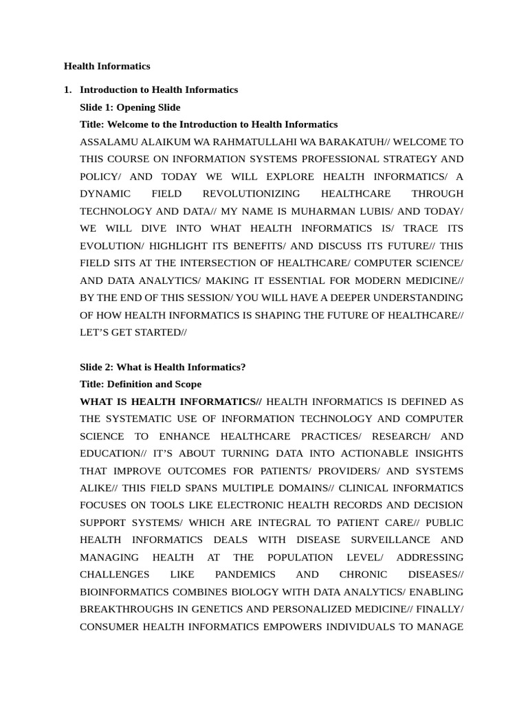 Title: Welcome to the Introduction to Health Informatics