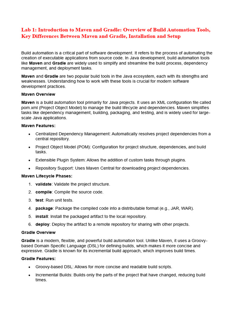 Lab 1: Introduction to Maven and Gradle: Overview of Build Automation Tools,