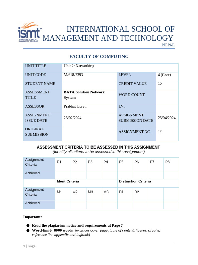 ● Assignment must be submitted through the Plagiarism Detection Tool