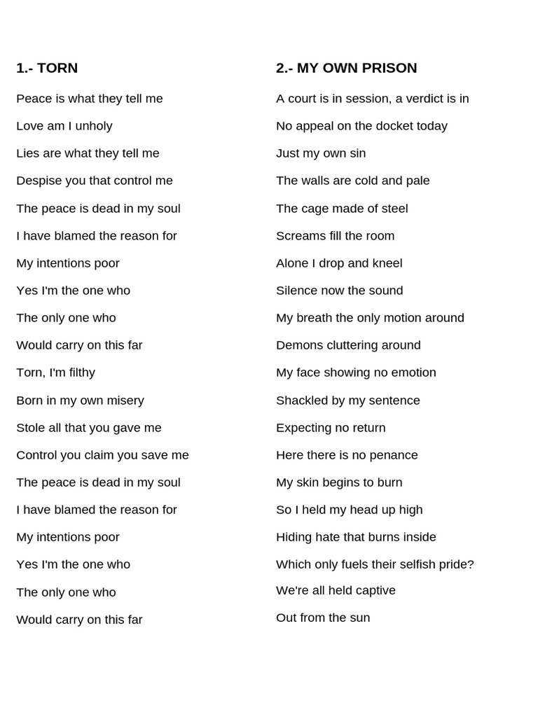 In my lifetime when I’m disgraced 12.- MY SACRIFICE